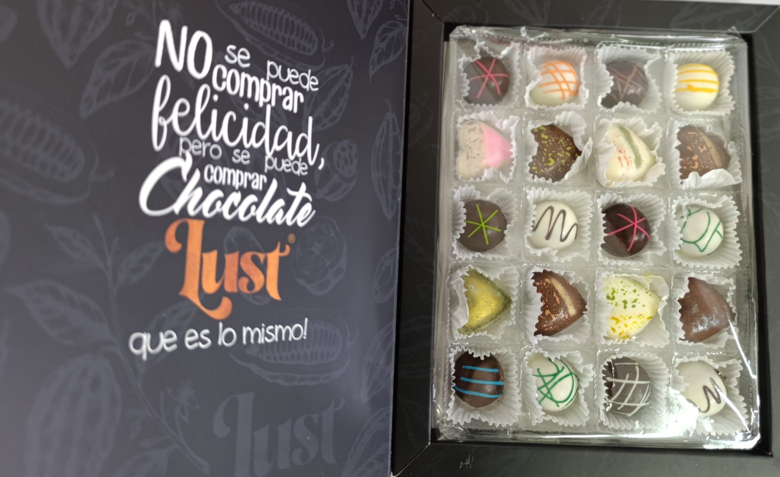 Caja estilo Libro con 20 chocolates que son : 12 trufas rellenas de Ganache de chocolate surtidas (Naranja, Banano, Coco, Maracuyá, Café, Brandy, Amaretto, Aguardiente y Ron) y 8 corazónes de chocolate rellenos de arequipe.